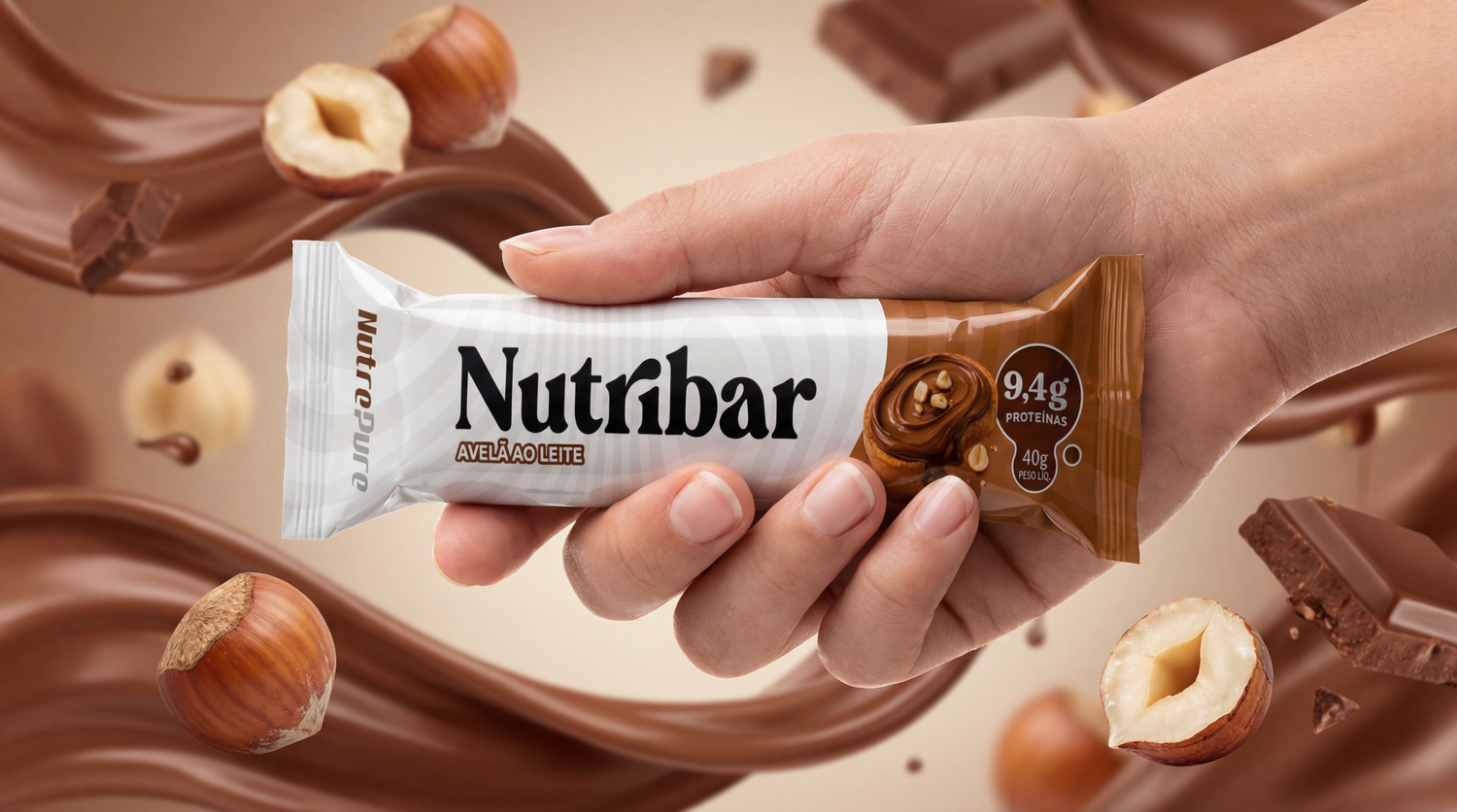 Recheio proteico sabor chocolate com avelã (oleína de palma, cacau em pó natural, leite em pó integral, leite em pó desnatado, gordura vegetal, liquor de cacau, estabilizantes maltitol, polidextrose e celulose microcristalina, aromatizante idêntico ao natural, emulsificante lecitina de soja* e polisorbato de sódio), cobertura proteica sabor chocolate branco (concentrado proteico de leite em pó, gordura vegetal, soro de leite em pó, leite em pó desnatado, estabilizantes maltitol e polidextrose emulsificante lecitina* e aromatizante idêntico ao natural), caseinato de cálcio, proteína de soro do leite concentrada, avelã granulada, gordura vegetal, inulina de chicória, proteína de soro do leite isolada, edulcorantes maltitol e glicosídeos de esteviol de Stevia rebaudiana Bertoni, estabilizante polidextrose umectante glicerol, emulsificante lecitina, antiumectante fosfato tricálcico, aromatizante e antioxidante extrato de alecrim.